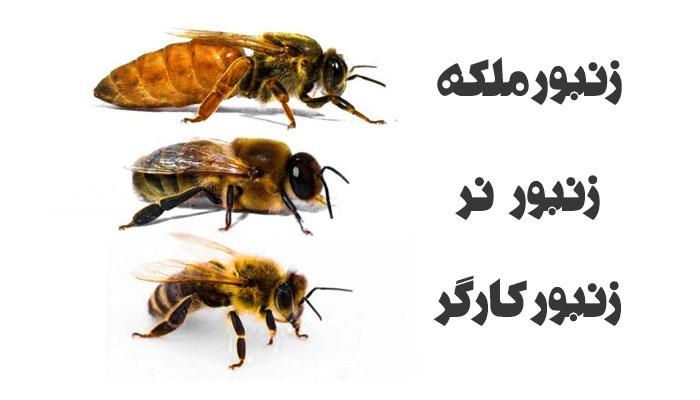 کارگر، زنبورهای نر (drones) و زنبور ملکه. چندین هزار زنبور کارگر در لانهسازی، جمعآوری غذا و پرورش نوزادها (لاروهای زنبورعسل) همکاری میکنند.